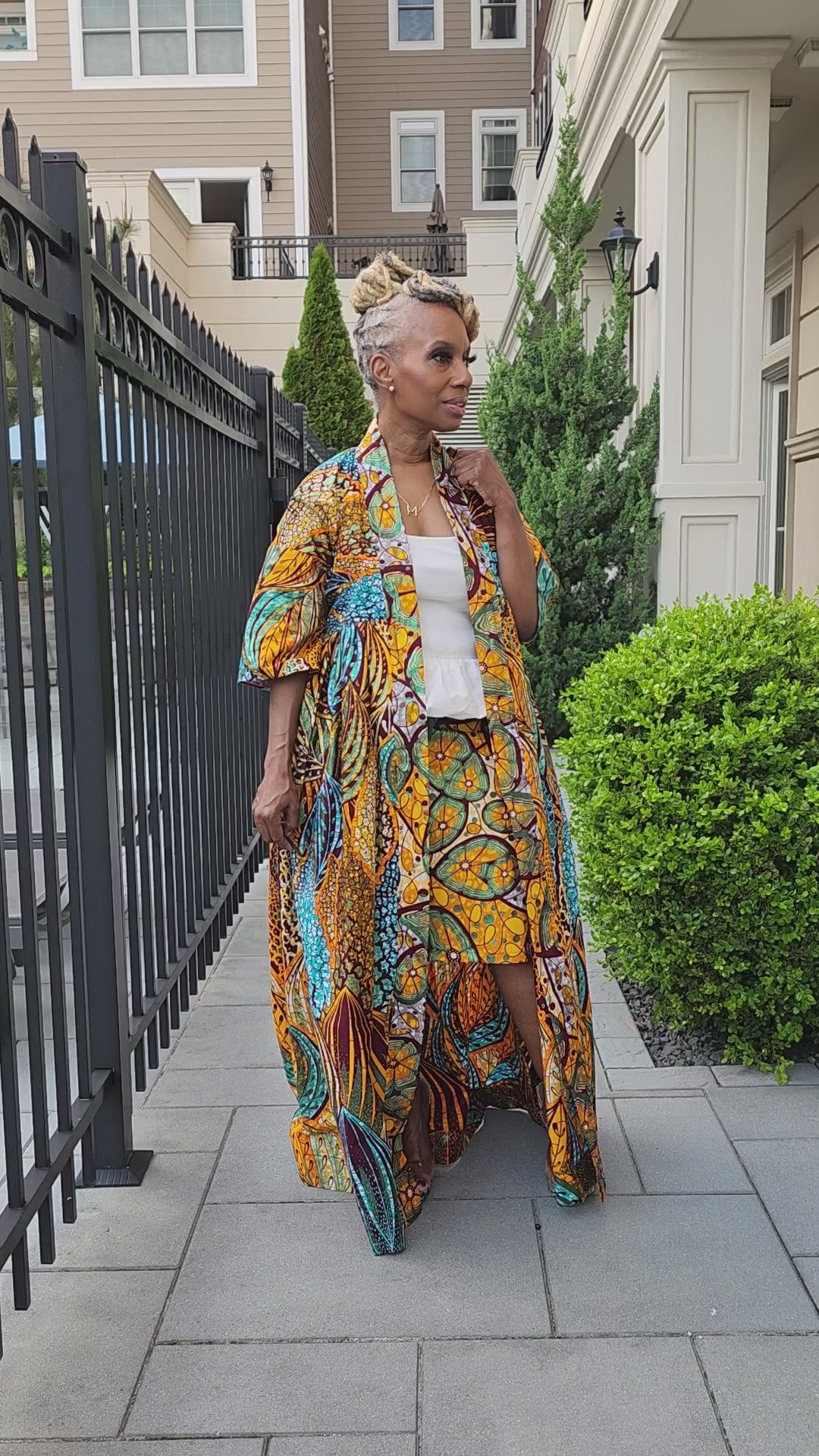 Wear it with a turtleneck, jean jacket or blazer with boots to transition it into the fall. A camisole and heels to give it an elevate date night look. Pair it with the coordinating Kimono and have an elevated one of a kind look that will sure to start all the conversation with you enter the rom.