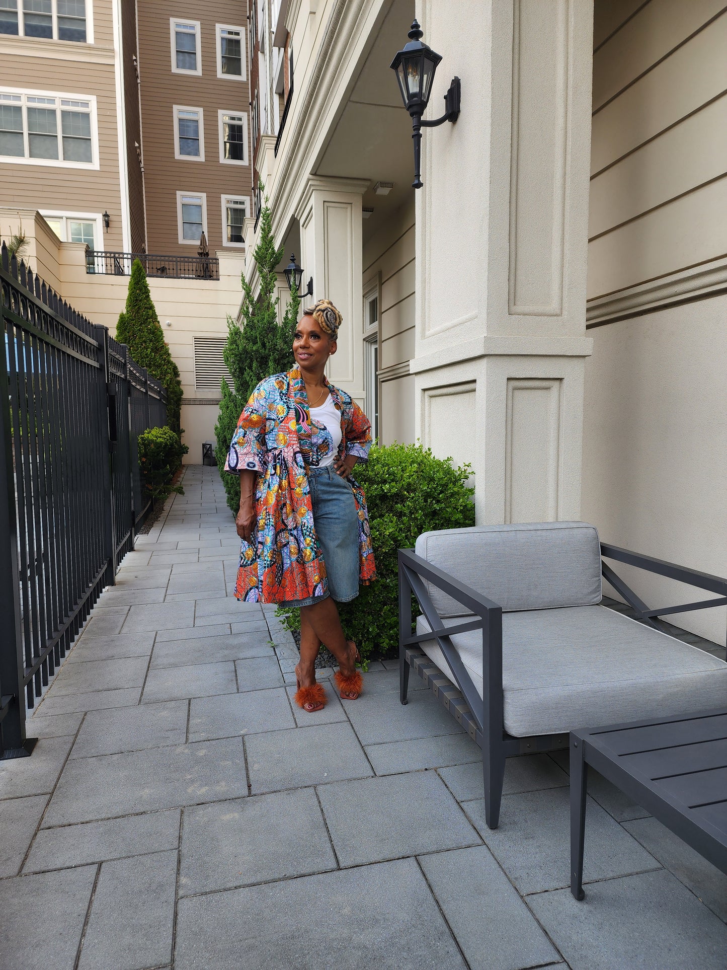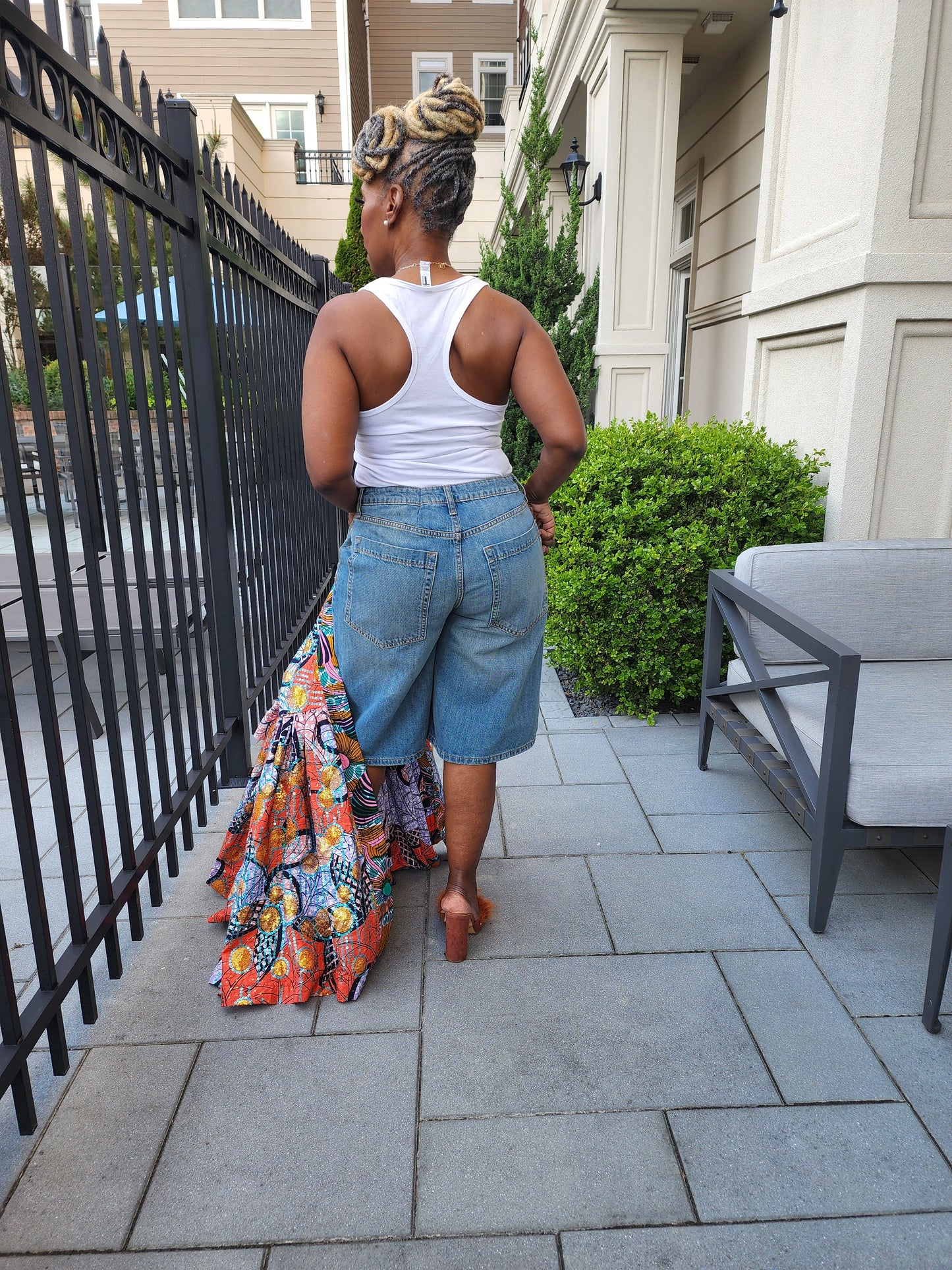 LiLiGirl's Afro Tank Top has a long line racer back. It's perfect for those casual spring afternoons. Made from Sequin African Wax Fabric. Mix prints and pair it with jeans or a cute belle skirt!